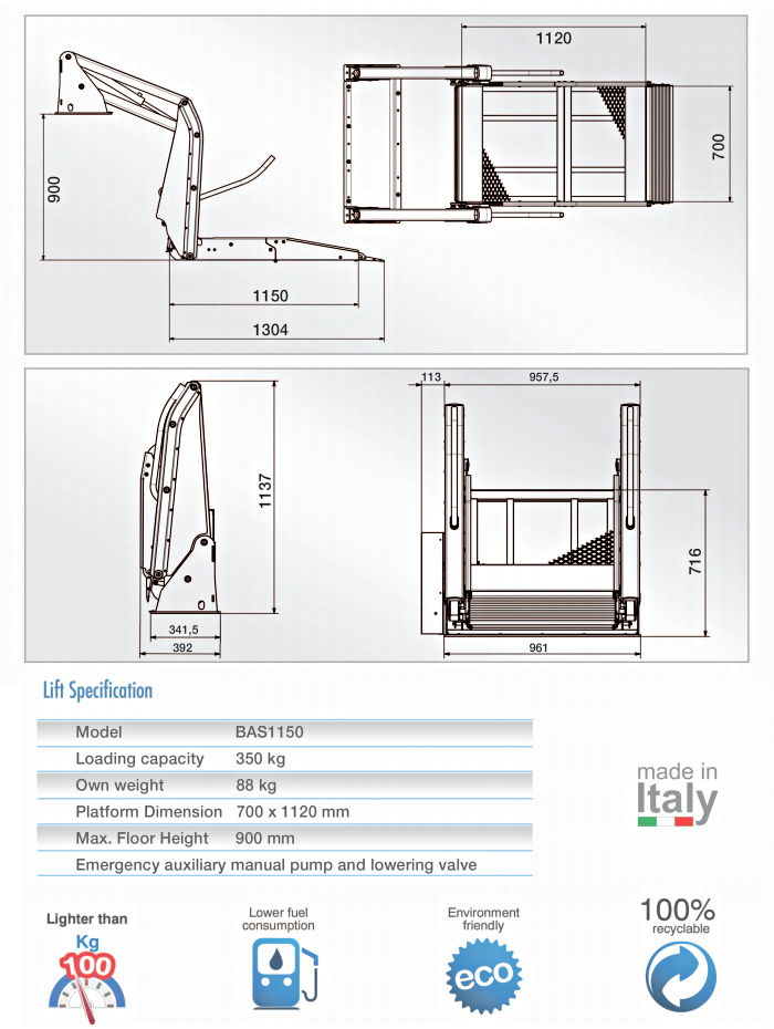 un sollevatore dal peso proprio di Kg. 88 ma con una portato