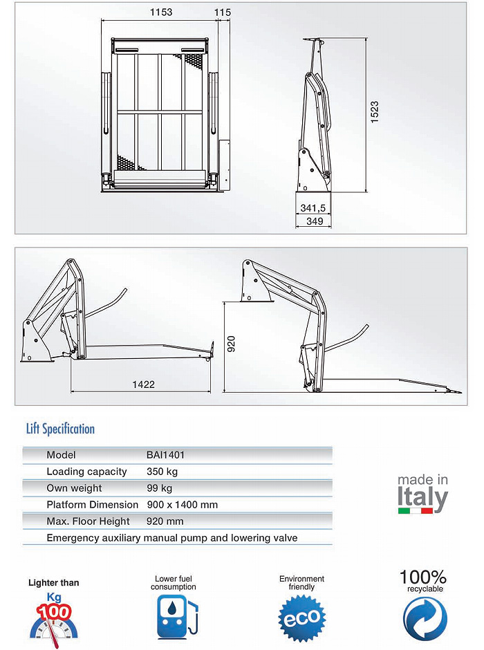 particolare la MP1400Allu ha un paianale 1422 x 800 mm. ed