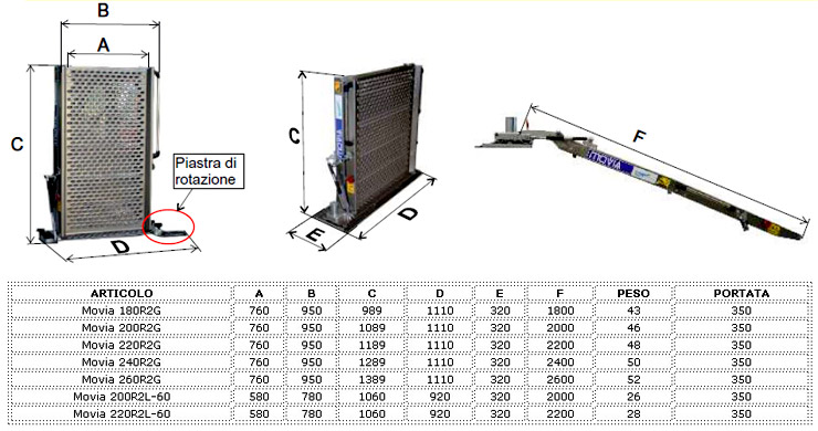 Movia - per veicoli o per il superamento delle barriere architettoniche