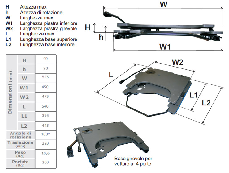 basi girevoli sono dotate di un cuscinetto assiale montato