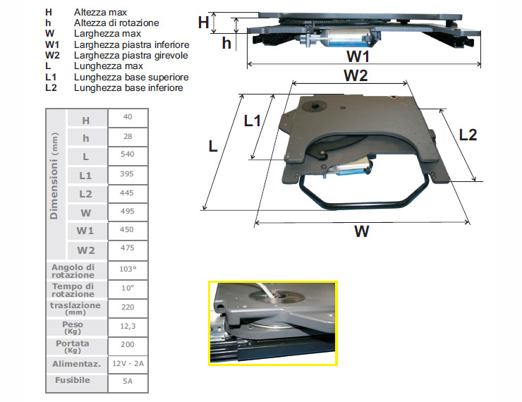 La rotazione viene comandata da un'apposita pulsantiera a