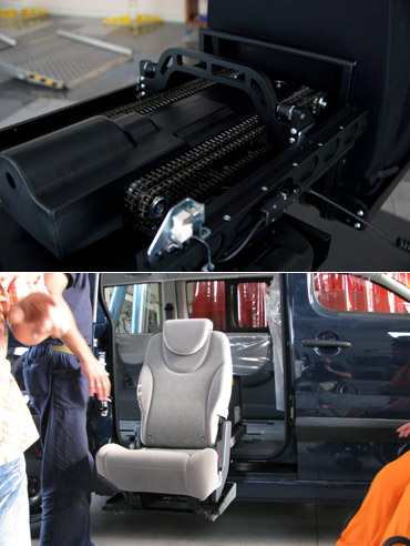 e abbassarsi all'altezza della seduta della carrozzina. In